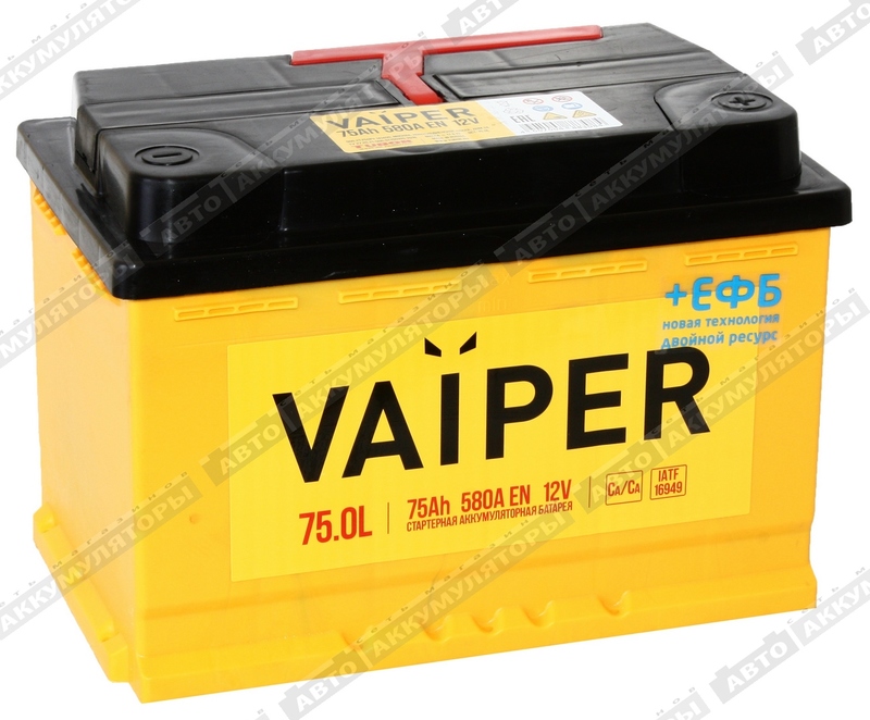 Легковой аккумулятор Vaiper 6СТ-75.0 L